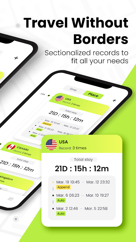 Kali pertama anda menggunakannya, klik daftar masuk, ia secara automatik membuka rekod masa lokasi semasa anda dan apabila anda pergi dari negara A ke negara B, ia menamatkan rekod bahagian perjalanan anda ini dan menandakan masa penginapan anda. Anda boleh melihat dengan jelas masa penginapan anda di setiap negara dalam halaman statistik, supaya anda boleh mempunyai rekod masa perjalanan anda yang lebih jelas.