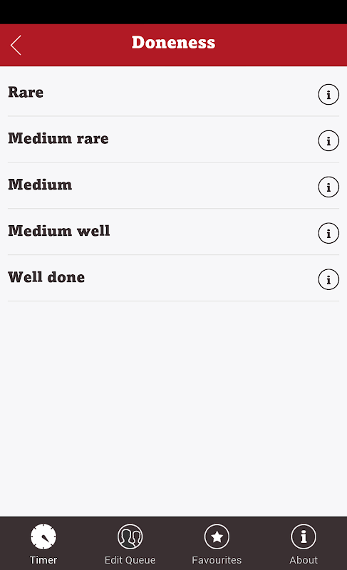 Memasak lebih daripada satu? SteakMate mempunyai yang dipenuhi dengan fungsi gilirannya, membolehkan anda menambah seberapa banyak orang ke barisan supaya semua orang mendapat steak mereka yang dimasak seperti yang mereka suka. Mendapat stik kegemaran yang anda suka untuk memasak? Mengapa tidak menambahnya ke senarai kegemaran di SteakMate supaya anda hanya satu langkah lagi dari memasak stik yang sempurna.