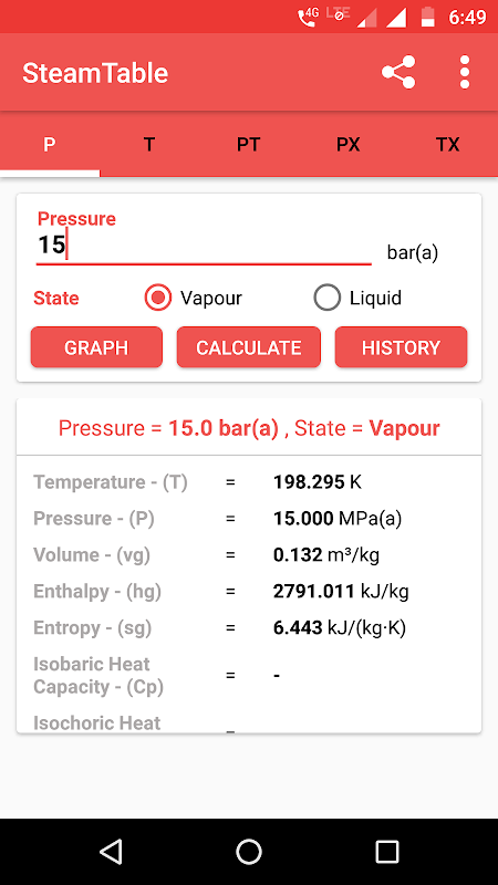 app Jadual wap membantu anda mengira termodinamik harta air menggunakan T, P.