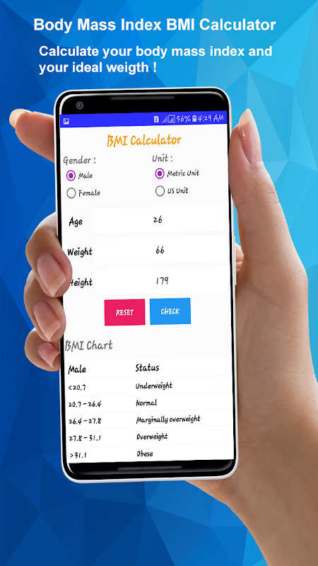 BMI Calculator is free app that allows you to monitor BMI and percentage of fat in your body.