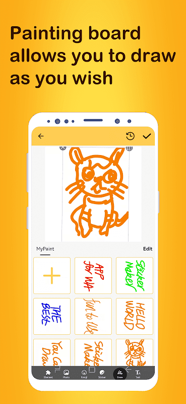 - Paint : Sticker Maker has a built-in drawing board, you can use it to draw pictures, and you can set the drawn pictures as Stickers and share with your relatives and friends, or export to your mobile device.