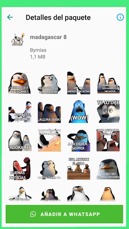 La aplicación Stickers de Madagascar para WhatsApp WAStickerApp te permite agregar más de 300 stickers de la serie Madagascar.