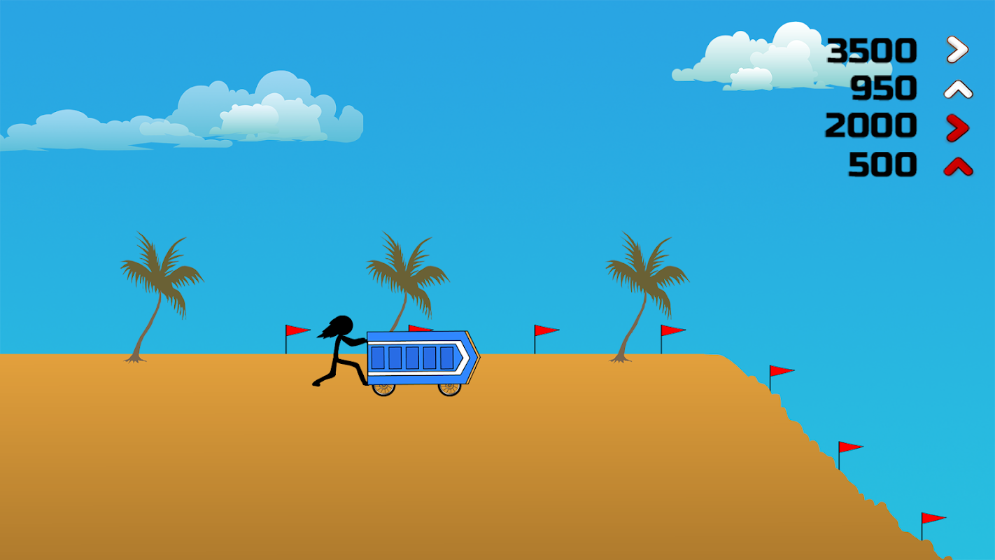 Anda bermula dari 2 roda dan seorang stickman, memperoleh wang dari setiap penerbangan dan membeli peningkatan atau pesawat dari troli beli-belah. Wira! mulakan penerbangan sekarang.