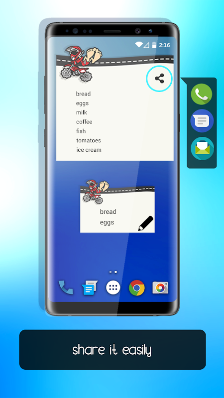 "Sticky notes widget " is a useful tool that allows you to create instant notes for remember day-to-day activities which user can able to identify each notes with different colors. It is a simple sticky note widget that allows you to write notes on the home screen easily, share notes messages through external applications like whatsapp, facebook and many more.