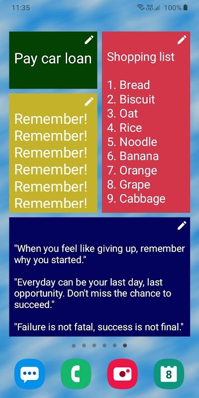 Ambil memo cepat, peringatan, senarai semak, senarai membeli-belah atau senarai tugasan dalam beberapa klik. Editor notepad menyimpan semua.