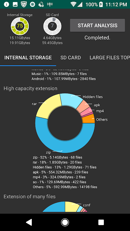*Since the difference after deletion processing is not reflected in the chart and disk usage gauge, please start analysis again.