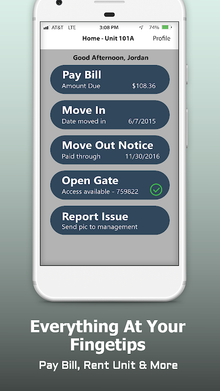 · Pengesahan cap jari disediakan untuk login selepas log masuk awal anda. · Bil Bayar bulanan dengan 2 klik. Setelah pelanggan yang telah log masuk untuk kali pertama, mereka boleh log masuk dengan cap jari kebenaran, membuat akses kepada maklumat mereka snap. · Mudah menandatangani perjanjian kontrak dan ia akan segera melalui e-mel kepada pelanggan. · Pelanggan semasa boleh menyewa satu unit dan bergerak lebih cepat kerana maklumat pelanggan sudah auto-penduduk. Ini membolehkan pelanggan untuk menerima dan meneruskan tanpa menaip semula maklumat peribadi mereka. · Mudah melihat apa baki tertunggak pada bila-bila masa. · Tab Profil membolehkan pelanggan untuk mengemas kini maklumat peribadi, alamat, telefon, e-mel, dan lain-lain · Banyak lagi ciri-ciri sedia!