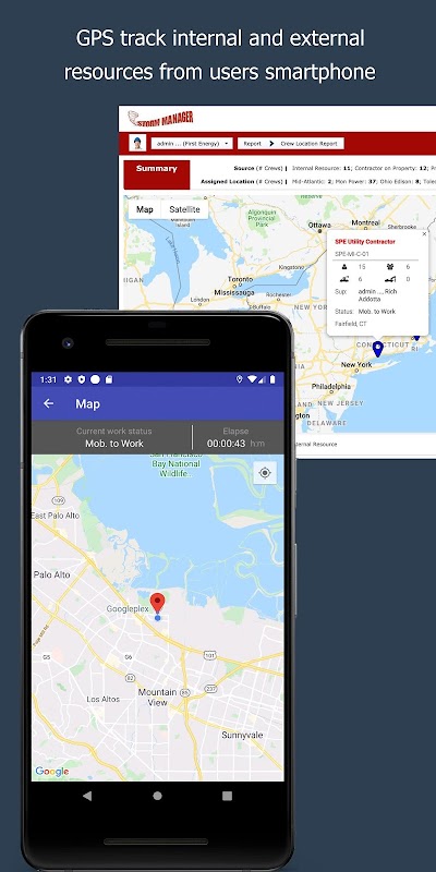 Pengurus Storm menghubungkan syarikat yang terlibat dengan seluruh tenaga kerja mereka secara dalaman dan luaran dalam masa nyata. Pengguna berasaskan lapangan menggunakan aplikasi mudah alih ini untuk mengemas kini jadual anak kapal mereka, menjejaki masa mereka, menyerahkan perbelanjaan mereka, dan mendapatkan arahan ke hotel mereka.