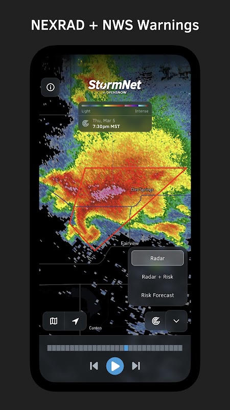 StormNet dioptimumkan untuk menyediakan ramalan cuaca buruk yang paling tepat dengan NEXRAD, Super-Res Radar.