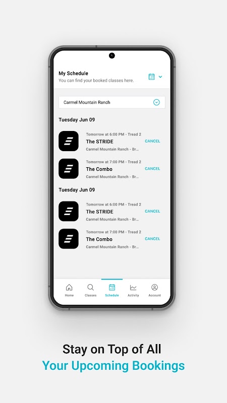 - Lihat kelas anda yang akan datang dalam jadual dalam apl kami dan urus keahlian anda dalam apl.