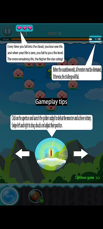 Permainan biasanya ditetapkan dalam adegan mudah, di mana pemain mengawal awan jungkir balik yang bergerak mendatar dan menggunakan lantunan cudgel emas untuk menghapuskan raksasa, dengan matlamat untuk melengkapkan tahap dalam masa yang terhad.
