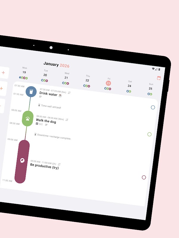 Buat tugasan dalam beberapa saat, tetapkan tarikh akhir dan bentuk hari anda mengikut cara anda. Sama ada anda menyulap kerja, uni, ADHD atau hanya mencari lebih banyak keseimbangan - Structured membantu anda berada di landasan yang betul tanpa tekanan.