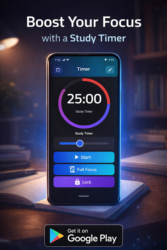 Tukarkan telefon anda menjadi platform pengurusan belajar lengkap yang direka untuk meningkatkan fokus, produktiviti dan organisasi akademik.