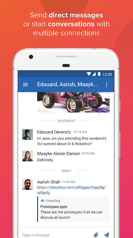 - Send direct messages or start conversations with multiple connections