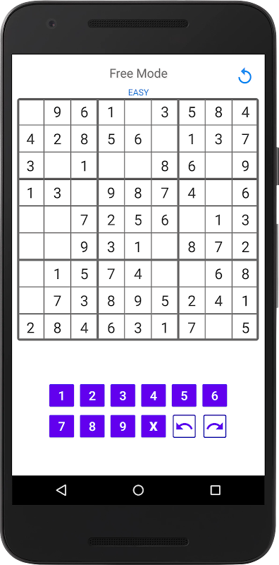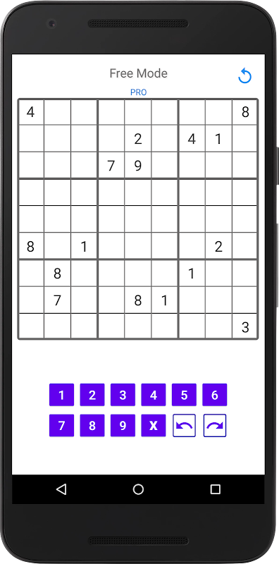 Permainan Sudoku mempunyai mod permainan percuma yang bermaksud tiada masa dan tiada had pergerakan, pembayang boleh menerima 1 nombor sahaja dengan keupayaan untuk kembali atau ke hadapan atau menetapkan semula permainan pada bila-bila masa..