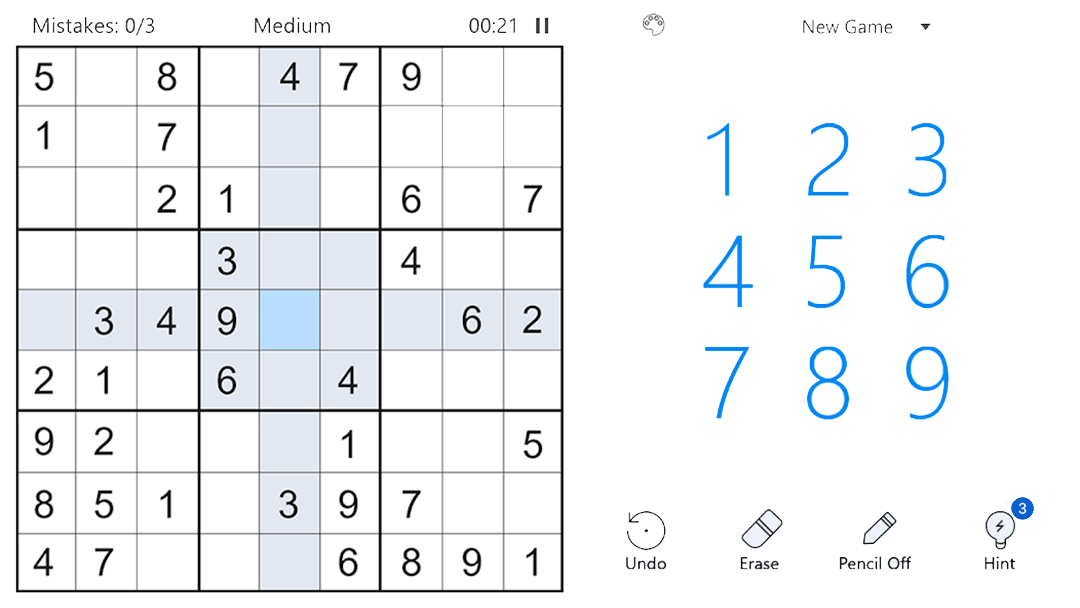 💪 Berbagai Tingkat Kesulitan: Permainan ini menawarkan berbagai tingkat kesulitan, termasuk Pemula, Menengah, dan Lanjutan. Apa pun pengalaman Sudoku Anda, Anda dapat menemukan tantangan yang sesuai. Seiring kemajuan Anda, Anda dapat secara bertahap menangani teka-teki Sudoku dengan level yang lebih tinggi.