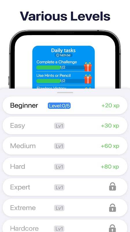 - Pelbagai Tahap Kesukaran: Pilih daripada Mudah, Sederhana, Keras, Pakar - sesuai untuk semua peringkat kemahiran.