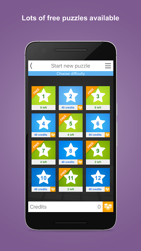 - Dapatkan sehingga 500 kredit PERCUMA untuk lebih banyak Sudokus.