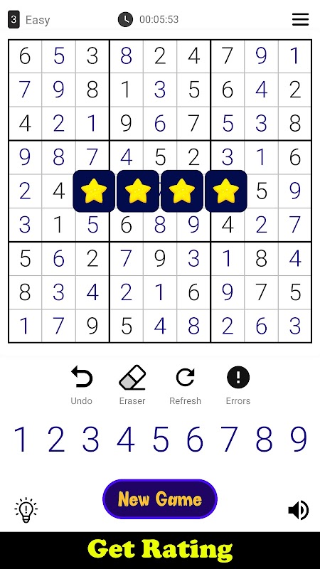 Stars are given on completion of the puzzle based on number of times hints are used.