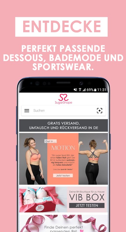 Mit der SugarShape App kannst Du wunderschöne Dessous immer und überall shoppen. Berechne einfach Deine SugarShape-Größe über unseren Größenrechner und los geht’s.