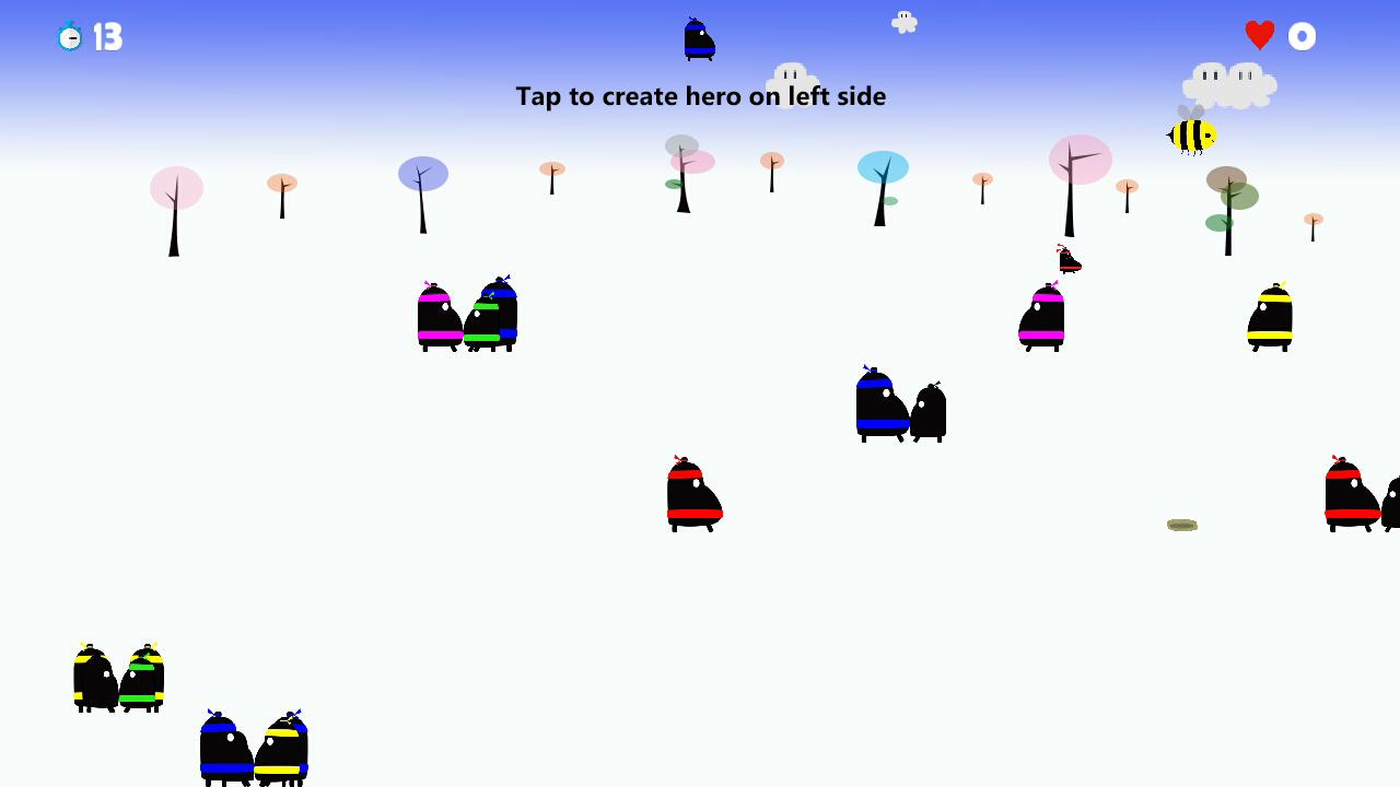 Sumo Hero is a mini game. It used one touch control. Users play game by touching on screen to create a sumo on left of screen. The sumo pushs others one on right side. Achievements will be get when user survive longer than special time.