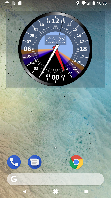 Widget jam analog 24 jam dengan wajah yang mewakili siang dan malam
