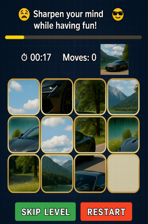 Kami melancarkan permainan ini untuk meningkatkan kuasa otak anda. Nama permainan ini ialah teka-teki grid kereta Super.