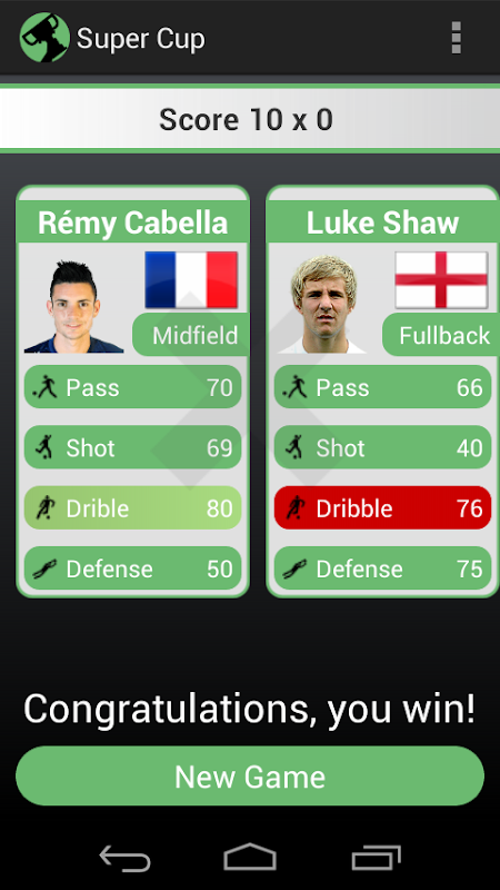 The World Cup has already started and the champions are doing the best to try to win it. In this super trump style game you can face the challenges and emotions of this big competition.