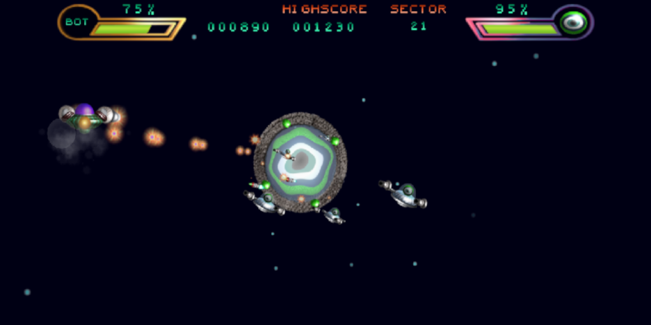 Gelombang pertempuran makhluk asing dalam Super Orbiter anda, dan mengalahkan musuh-musuh jahat.
