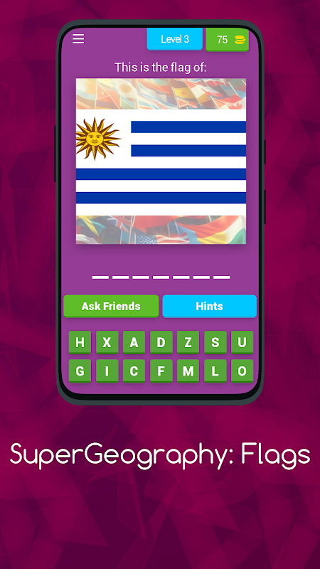 Uji pengetahuan anda tentang bendera dari seluruh dunia dalam permainan meneka yang menarik ini. Lihat bendera pada skrin dan teka negara mana ia milik. Dengan reka bentuk visual yang menarik dan permainan yang ringkas namun mencabar, permainan ini sesuai untuk pencinta geografi yang ingin meningkatkan kemahiran mereka sambil berseronok. Sahut cabaran dan jadilah ahli bendera!.
