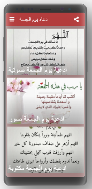 Kami menawarkan kepada anda dalam aplikasi sholat Jumaat beberapa doa untuk hari Jumaat dengan suara beberapa syeikh dalam aplikasi bergambar yang dapat anda muat turun di telefon .... Hari Jumaat adalah salah satu hari yang dibezakan oleh Tuhan Yang Maha Esa dari hari-hari yang lain, dan hari ini datang seminggu sekali sehingga Tuhan Yang Maha Esa memberi peluang kepada Muslim Doa dan mendekat kepadaNya, semoga memuliakan-Nya, jadi kami akan meninjau untuk anda doa pada hari Jumaat yang ditulis untuk mereka yang ingin membaca doa ini selain doa dengan doa yang diinginkan, dan orang Islam dapat membacanya pada jam terakhir hari ini pada hari Jumaat