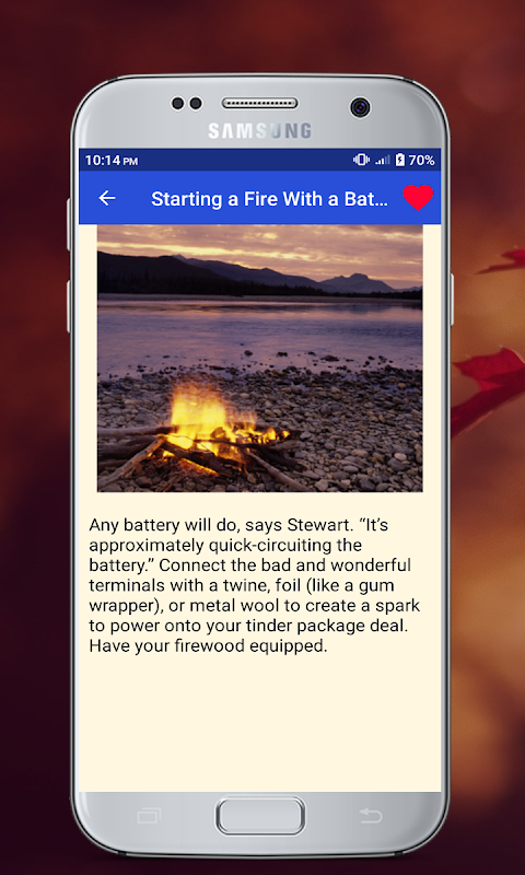 If you are Real Survivalist, Survival Guide , Avid Camper and only novice in techniques of surviving, who wants to be like a famous parson, this is the best APP for evolution Survi of your Skills!