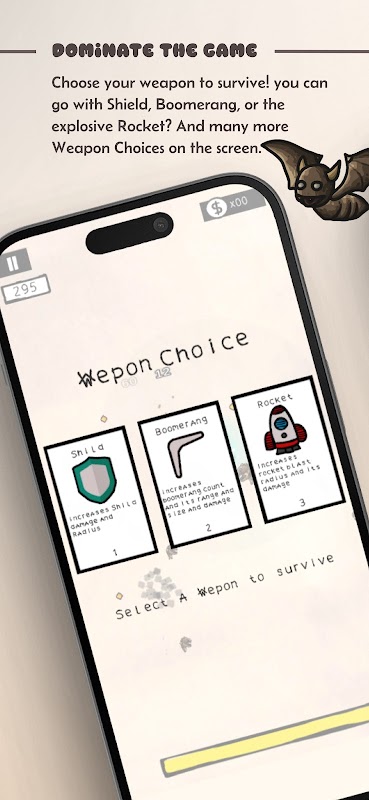 Kawal watak anda dengan mudah menggunakan kawalan satu tangan yang intuitif, di mana wira auto-serangan, membolehkan pemain menumpukan pada mengelak dan meletakkan kedudukan. Dengan setiap pemukul yang dikalahkan, pemain memperoleh mata pengalaman dan meningkatkan tahap, memperoleh akses kepada peningkatan dan kebolehan baharu, seperti senjata yang lebih kuat, perisai, Magnet atau kemahiran unik seperti Boomerang, bolt dan pisau cukur.