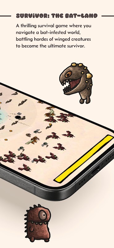 Survivor: The Bat-land ialah permainan mudah alih yang pantas dan penuh aksi di mana pemain mesti menangkis gelombang kelawar dan raksasa lain yang tidak berkesudahan sehingga mereka mencapai bos terakhir.