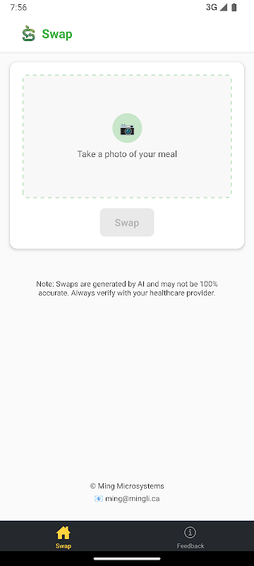Swap ialah rakan diet pintar anda. Ambil gambar makanan anda dan Swap akan mencadangkan alternatif yang lebih sihat dengan serta-merta. Sama ada anda mengira kalori atau hanya menyasarkan pilihan yang seimbang, Swap memudahkan anda menikmati pemakanan yang lebih baik setiap hari.