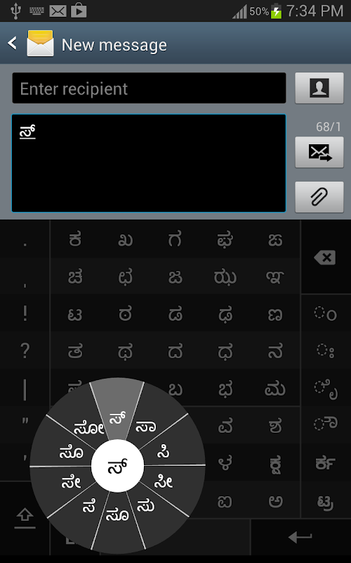 Dalam Kannada, kita sering perlu menaip gabungan yang konsonan ( ಧ ) dan matra ( ೊ ) seperti ಧ + ೊ = ಧೊ . Apabila anda menyentuh konsonan, chakra dengan kombinasi konsonan dan 10 Matras kerap muncul ( ಧಾ, ಧಿ, ಧೀ, ಧು, ಧೂ, ಧೆ, ಧೇ, ಧೊ, ಧೋ, ಧ್ ). chakra ini memberikan prebiu bagi gabungan watak mungkin. Untuk memilih gabungan, anda meluncurkan stylus atau jari ke arah itu.