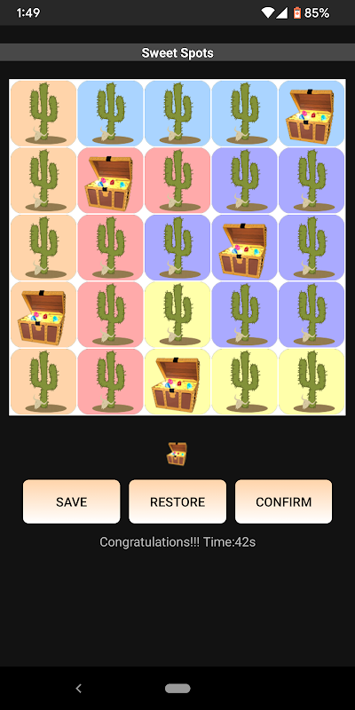 Dalam setiap permainan, anda adalah untuk mengedarkan nombor tetap (1 atau 2) dada harta setiap baris, setiap ruang dan setiap zon berwarna. Dada harta mesti diletakkan di tempat-tempat supaya tidak ada peti harta karun adalah bersebelahan berturut-bijak, ruangan-bijak atau menyerong satu sama lain.
