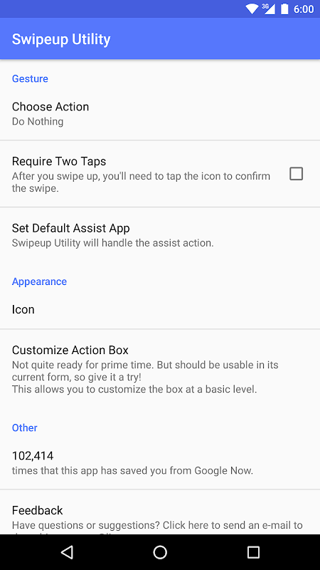 • Tidak buat apa-apa! tujuan asal Swipeup Utility adalah untuk mendapatkan yang sapu isyarat menjengkelkan keluar dari jalan, jadi jika anda memilih untuk berbuat apa-apa, leretan anda will- berbuat apa-apa!