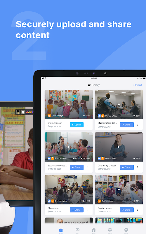Rakam, muat naik dan kongsi video dengan pengguna Swivl Capture yang lain untuk kerjasama.