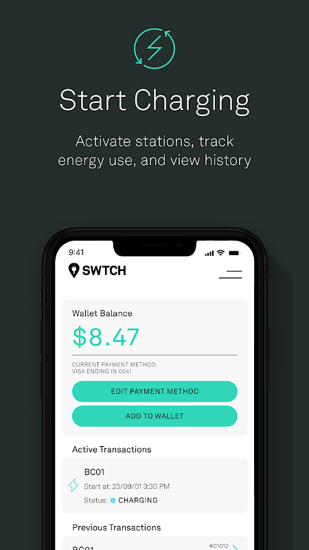 SWTCH ialah salah satu rangkaian pengecasan EV terkemuka di Amerika Utara dengan puluhan ribu pengecas aktif memastikan pemandu EV mendapat caj yang mereka perlukan. Dengan apl SWTCH, anda boleh mencari dan menggemari pengecas EV SWTCH yang terletak di rumah, tempat kerja atau komuniti anda, lihat jika ia tersedia dan mula mengecas.