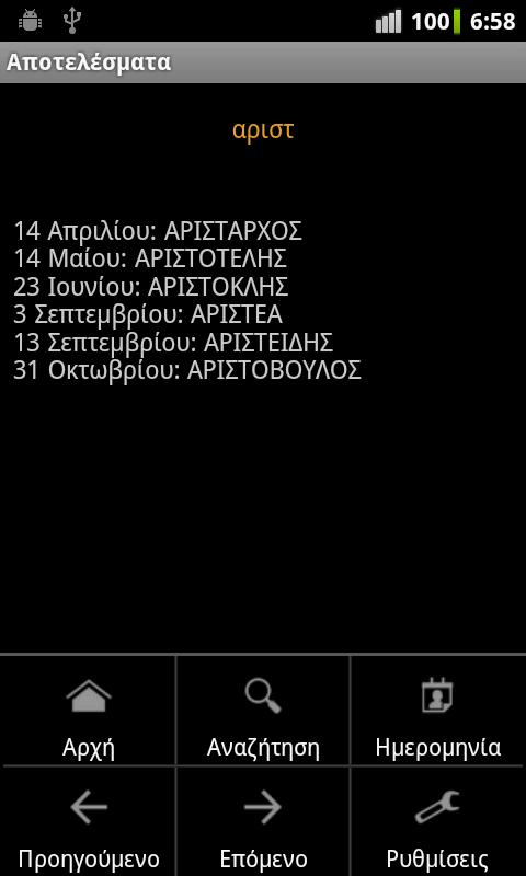 Η αναζήτηση στα ονόματα δίνει μια λίστα εορτών και στα αποτελέσματα συμπεριλαμβάνονται και πιθανά υποκοριστικά. Για παράδειγμα, αν ψάξουμε το "Νίκος" τα αποτελέσματα θα εμφανίσουν και το "Παναγιώτης" επειδή περιλαμβάνει και το "Πανίκος" που έχει σαν ένα τμήμα του το "νίκος".