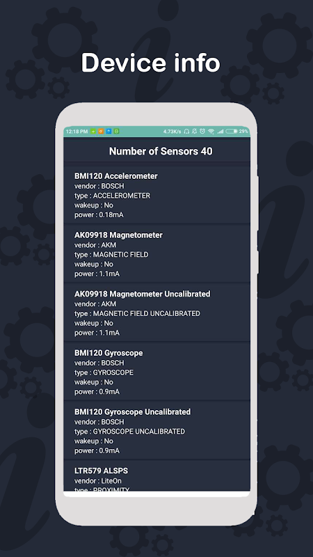 Maklumat Sistem & Maklumat Peranti ini memberikan anda cara terbaik untuk dikenali dengan peranti android anda. Kadang kala anda memasang aplikasi pada peranti anda dan mereka tidak berfungsi dengan betul, maka anda boleh menyemak spesifikasi peranti anda seperti Maklumat Sensor (Accelerometer, Gyroscope, Pedometer, Putar, Tilt, Gerakan, Magnetometer, Pengesan langkah, Graviti, Gerakan, Wakeup atau yang lain yang akan berada di telefon anda), Maklumat paparan (balak paparan Ketumpatan, paparan dpi, Skrin: Saiz skrin, Saiz fizikal, Orientasi lalai, lebar, ketinggian atau resolusi skrin).