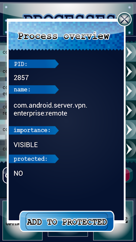 Application contains full and highly configurable process management. You can close unused processes, add them to protected mode and more.