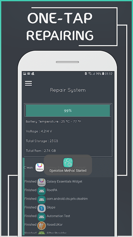 Sistem Pembaikan Untuk Android adalah aplikasi pintar seperti doktor untuk telefon anda, ia menyemak sistem keseluruhan anda dan aplikasi pembetulan pantas untuk membaiki masalah, jadi anda boleh mempunyai sistem yang stabil dan cepat, ia juga membetulkan ralat dan bug menyelesaikan masalah dan ruang yang tidak mencukupi, juga periksa memori RAM anda, imbasan untuk bug dan fail kerosakan, ia akan meningkatkan RAM anda.
