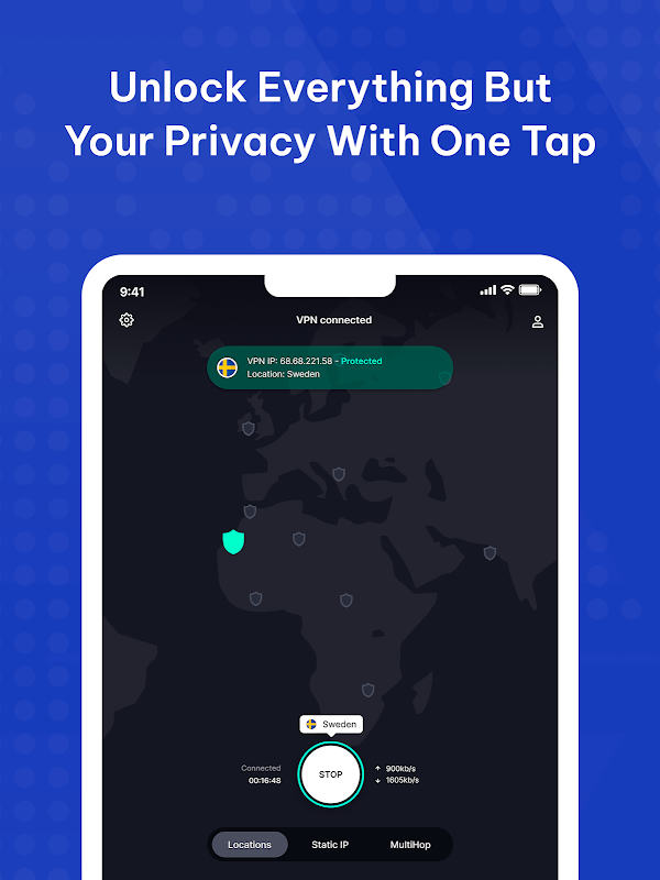 Setelah SysVPN dipasang dan anda sudah bersedia, data anda kini akan disulitkan dan dilindungi daripada penjenayah siber dan semua orang lain. Anda juga akan mengalami kelajuan sambungan internet yang lebih pantas kerana pelayan kami tersedia di seluruh dunia.