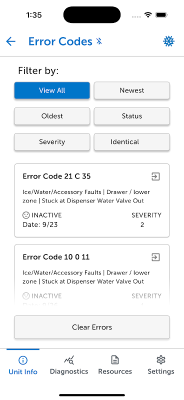◦ Lihat kod kerosakan, bacaan suhu dan status sistem dengan serta-merta.