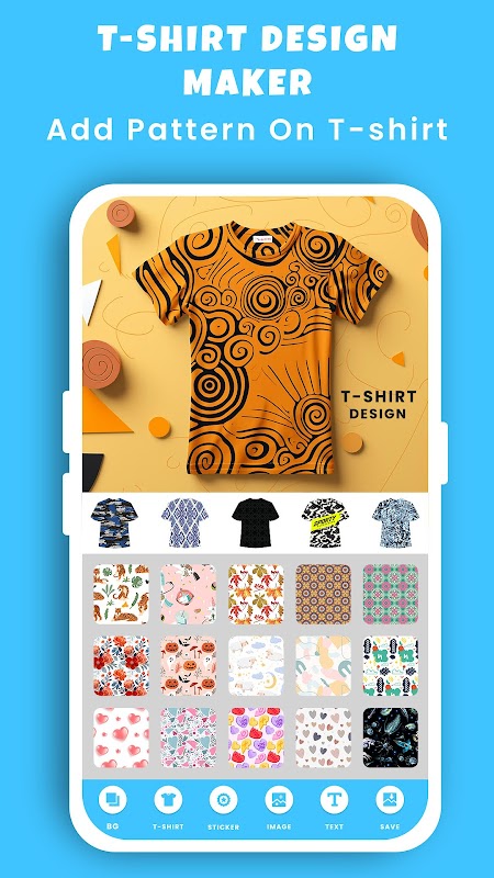 Apl kami mempunyai semua jenis ciri reka bentuk grafik dengan t-shirt di hadapan dan belakang. Anda boleh melengkapkan reka bentuk t-shirt unik anda dengan mudah, dengan alatan kami yang menyeronokkan dan mudah digunakan.