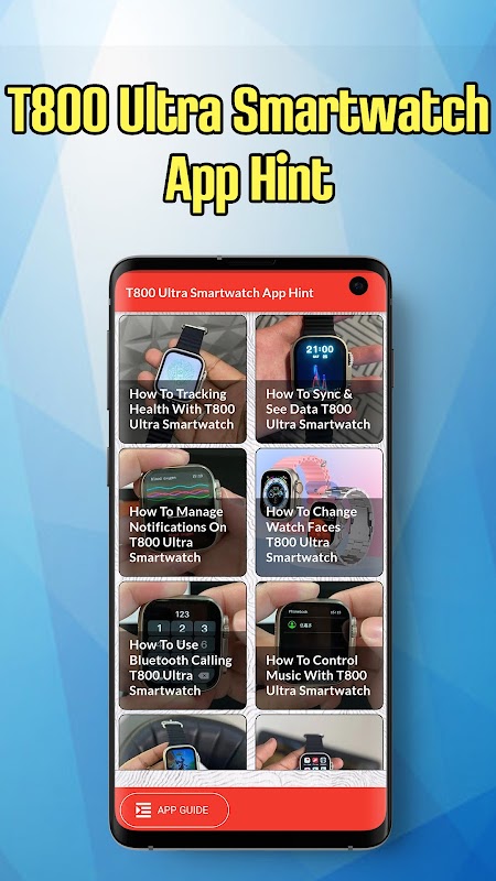 Selami panduan dan tutorial terperinci yang merangkumi segala-galanya daripada persediaan awal kepada ciri lanjutan. Temui fungsi tersembunyi dan optimumkan jam tangan pintar anda untuk kegunaan harian, penjejakan kecergasan, pemberitahuan dan banyak lagi. Dengan aplikasi ini, T800 Ultra Smartwatch anda bukan sahaja menjadi alat tetapi alat berkuasa yang disesuaikan dengan gaya hidup anda.