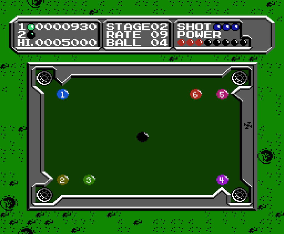 Combines mini golf with pool (pocket billiards), in which each stage is a differently shaped pool table. The object is to knock each ball into a pocket using a cue ball. There are sixty levels to choose from, and the friction of the table is adjustable.