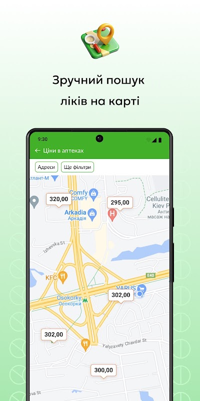 • Pengambilan ubat tidak lagi menjadi masalah: walaupun anda memerlukan ubat yang sukar didapati, kami tetap akan membantu anda mencari ubat tersebut berhampiran anda. Mencari ubat di farmasi telah menjadi lebih mudah berbanding sebelum ini. Kini semua farmasi di seluruh Ukraine berada di hujung jari anda. Semua farmasi utama di Kyiv, Kharkiv, Odesa, Lviv, Dnipro, Poltava, Vinnytsia, Zaporizhzhia dan bandar-bandar lain di Ukraine boleh didapati.